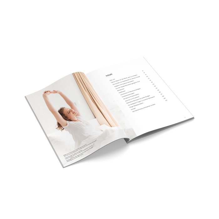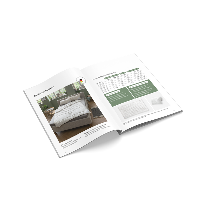 Unsere Broschüre umfasst 48 Seiten mit geballtem Wissen über Schlafoptimierung und auch einer Übersicht über unsere Alpaka Bettwaren.