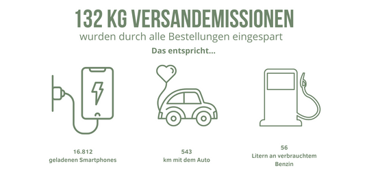 Durch den Versand unserer Produkte konnten bereits 132 kg CO₂-Emissionen eingespart werden – ein bedeutender Schritt in Richtung Nachhaltigkeit.