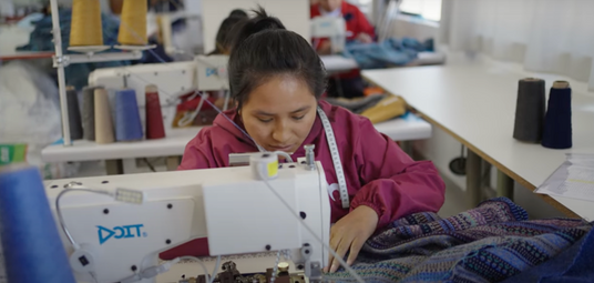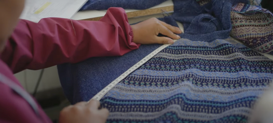 Teresa leitet die Nähabteilung, wo Kleidungsstücke wie Handschuhe und Pullover gefüttert werden.