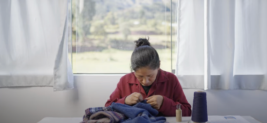 Yony ist für die finale Verarbeitung verantwortlich und arbeitet jedes Kleidungsstück von Hand nach, versäubert die Nähte und perfektioniert es für den Versand, indem die Kleidungsstücke gebügelt und sorgfältig verpackt werden.