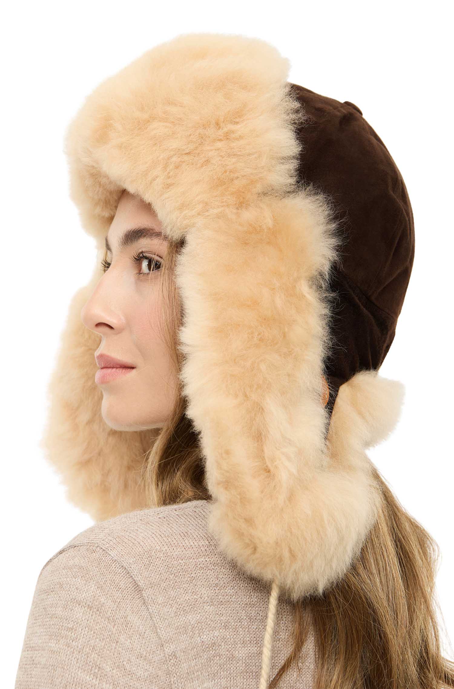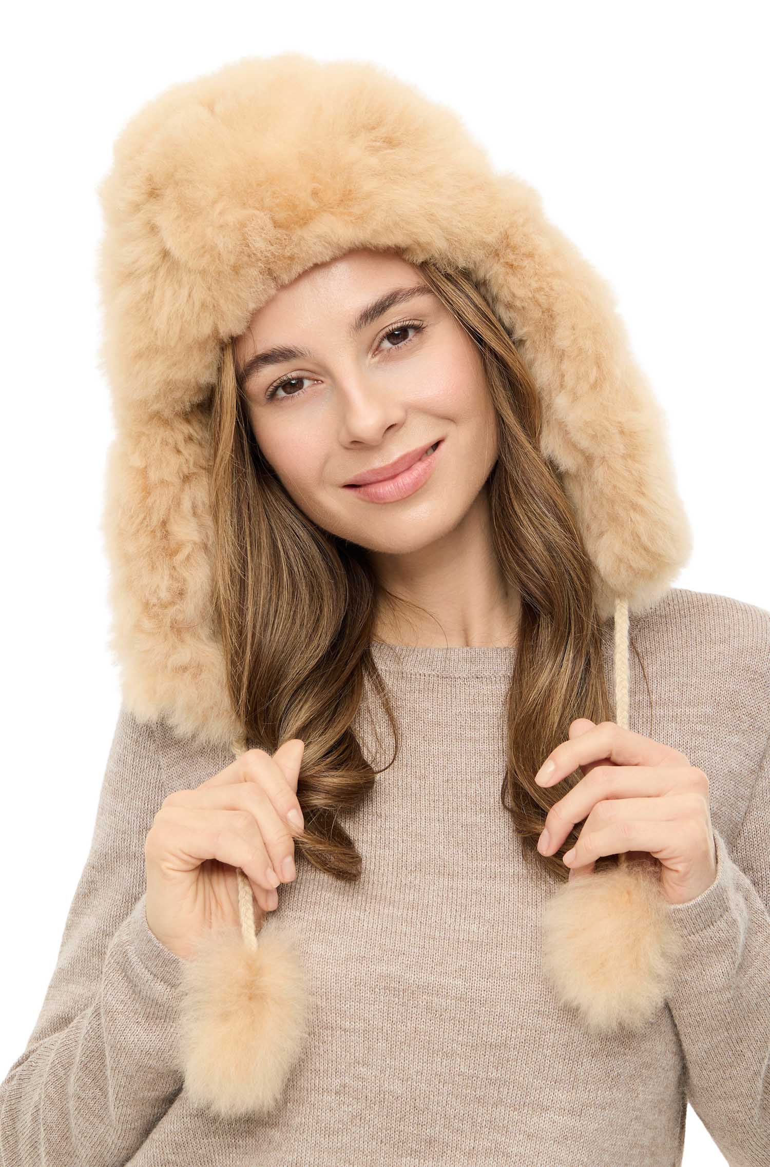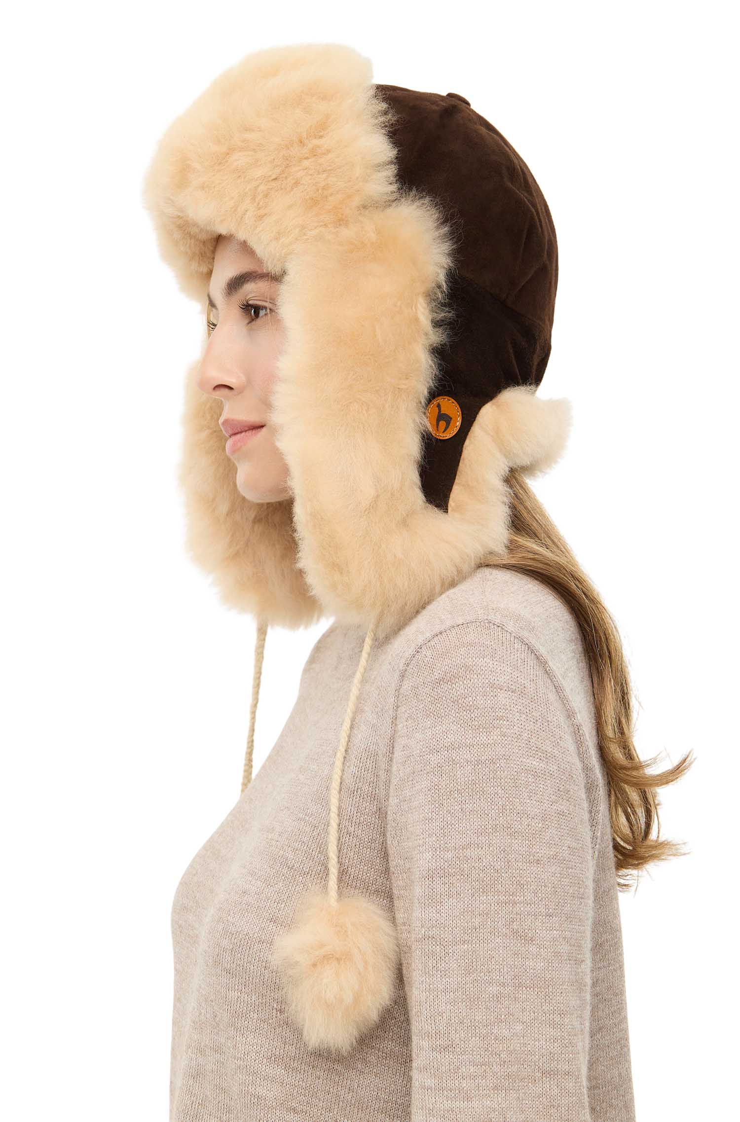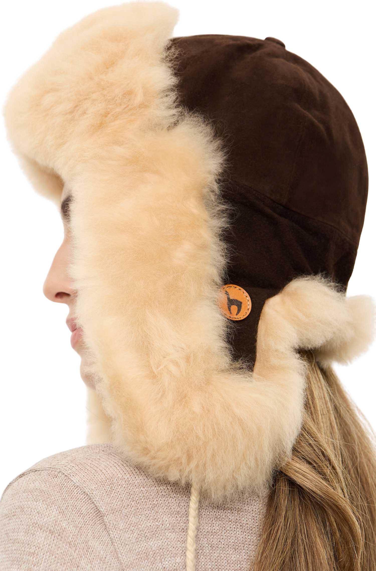 Flieger Fellmütze aus 100% Alpaka Fell - braun