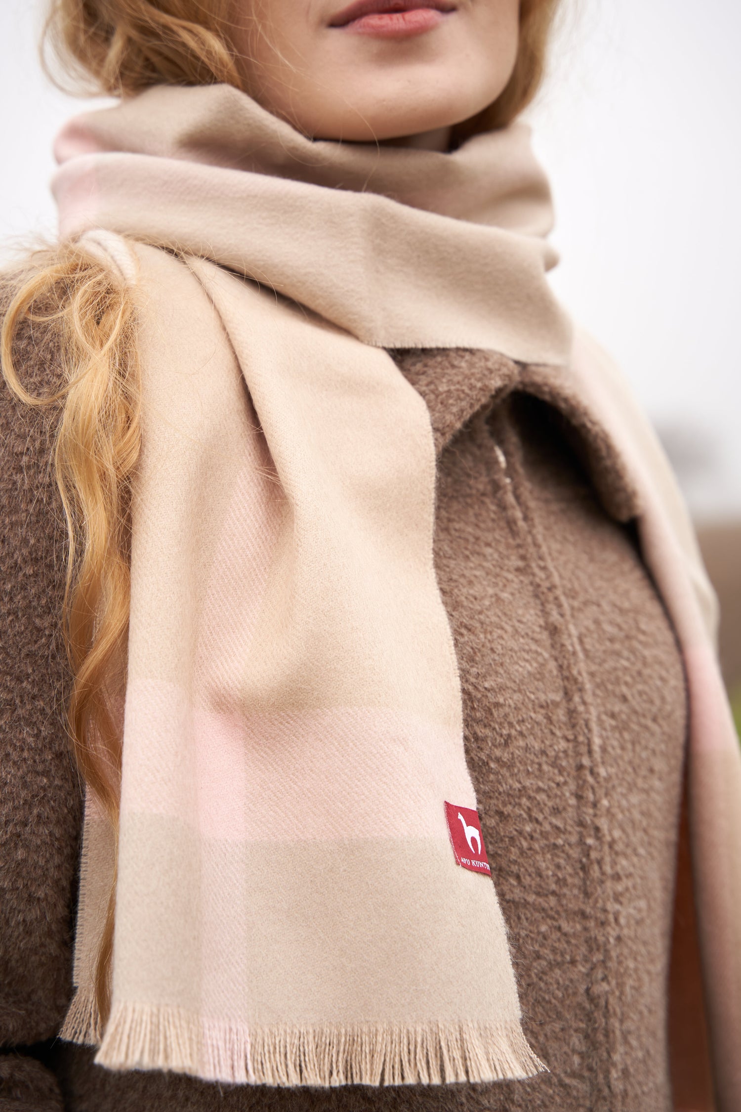 Der Alpaka Schal GALANO aus 100% Baby Alpaka bietet Damen und Herren ein äußerst kuschelweiches und strapazierfähiges Gewebe. Er ist der perfekte treue Begleiter für die kühlere Jahreszeit. Sein klassisches Karo-Muster macht ihn zu einem zeitlosen Accessoire mit höchster Qualität. Freuen Sie sich auf warme Spaziergänge, denn dieser Schal hält Sie zuverlässig kuschelig warm.