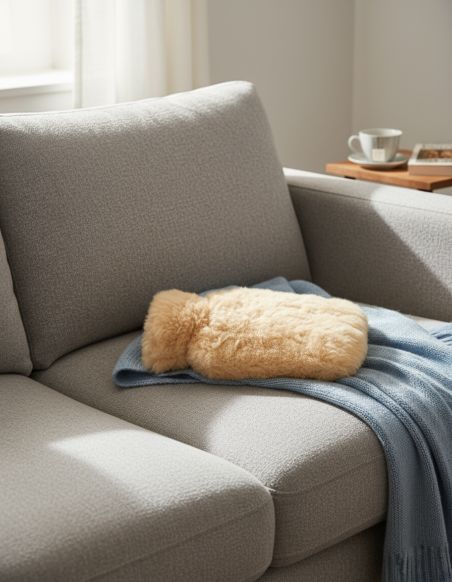 Diese Alpaka Wärmflasche hat einen kuschelig superweichen Bezug aus Alpaka Fell (Farbe beige) und garantiert ein einmaliges haptisches Gefühl.
