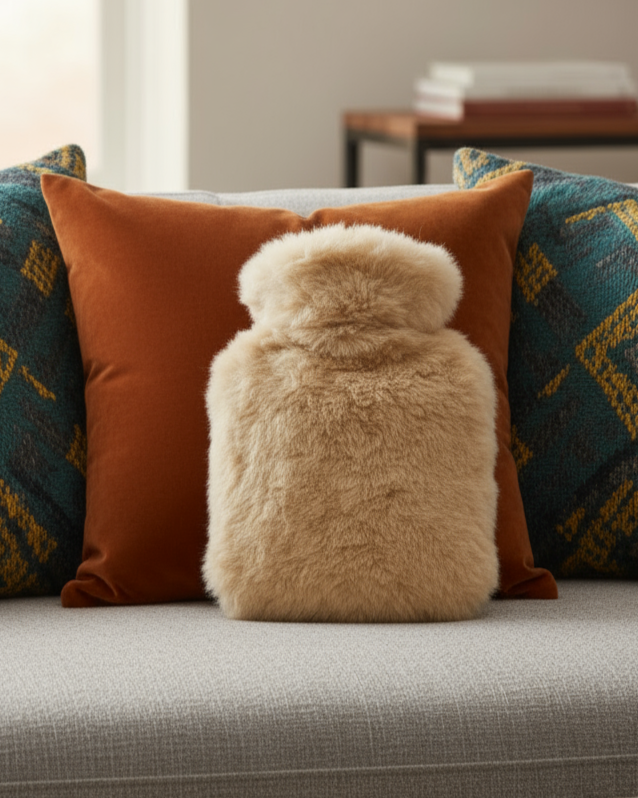 Alpaka Wärmflasche PREMIUM - beige - 100% Alpaka Fell