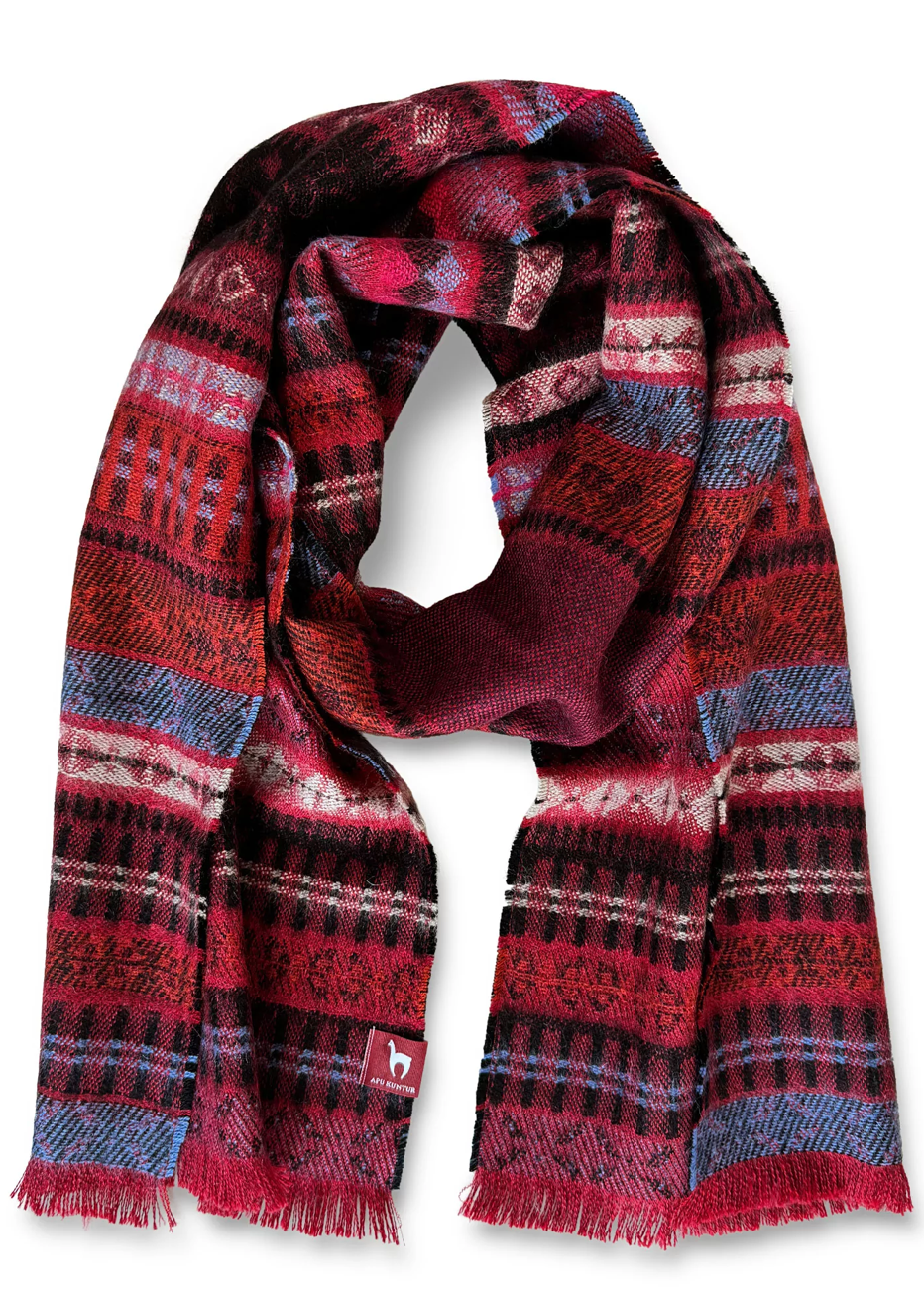 Der Alpaka Webschal PUKA aus 100% Baby Alpaka kombiniert traditionelles peruanisches Muster mit luxuriösem Tragekomfort. Mit seinen lebendigen Rottönen bringt er Farbe in den Winter und wärmt stilvoll an kühlen Tagen. Dank des besonders weichen Materials ist er ideal für empfindliche Haut. Hergestellt in Peru unter fairen Bedingungen.