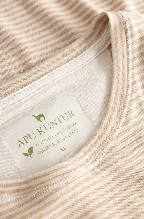 Das Herren Shirt NATIVO aus Nativo- und Pima-Baumwolle bietet Ihnen ein leichtes Tragegefühl und eine natürliche Herkunft. Mit 100% biologisch gewachsenem Nativo-Garn aus dem peruanischen Regenwald und 50% Nativo- und 50% Pima-Baumwolle in ungefärbtem und unbehandeltem Zustand, bietet dieses klassische Shirt mit Rundhalsausschnitt ein einzigartiges Streifen-Muster in ivory-beige. Entdecken Sie die Schönheit und Originalität der Natur mit Nativo.